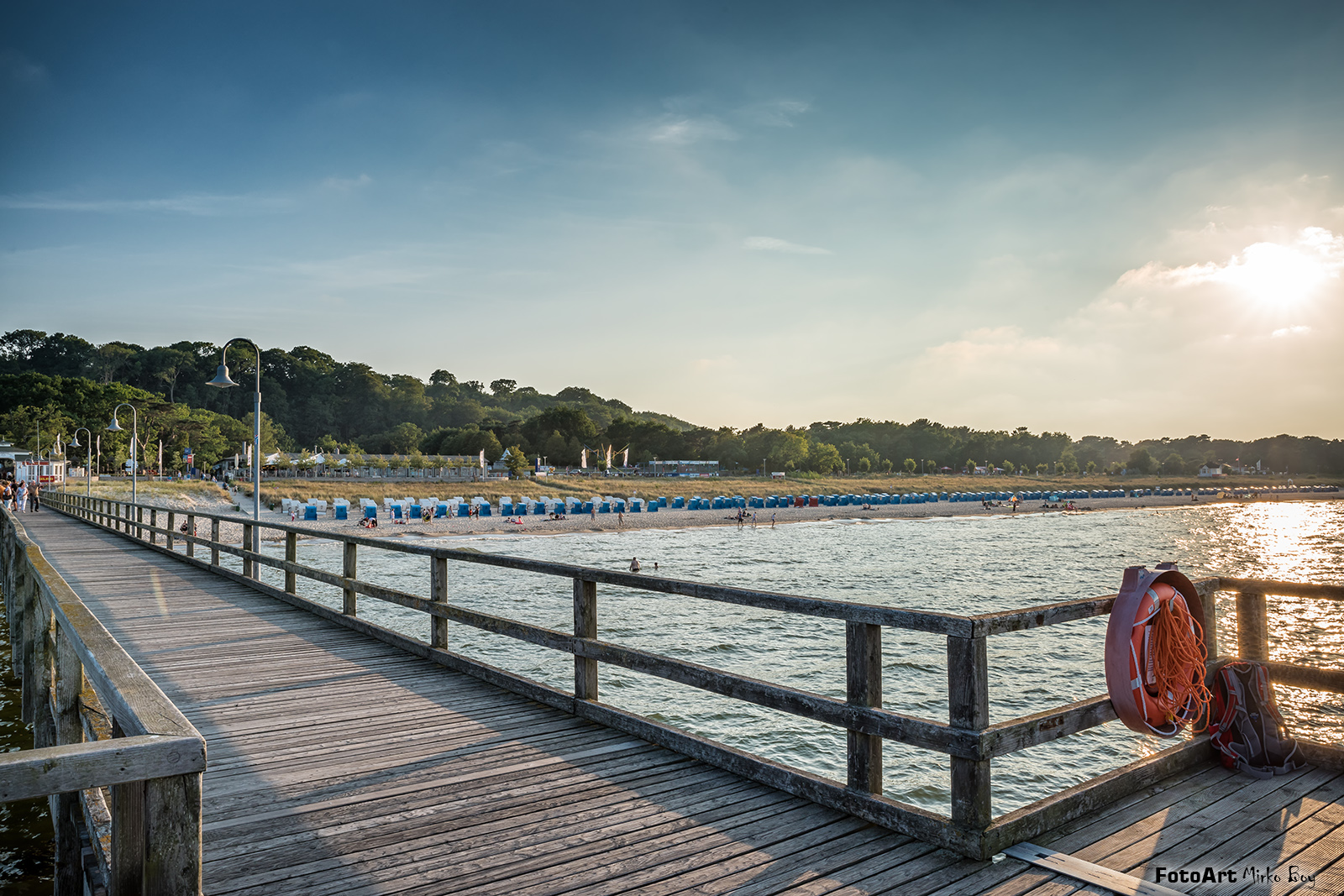Seebrückenblick Ostseebad Göhren, Sonnenuntergang, Strand, Küsten, Abends