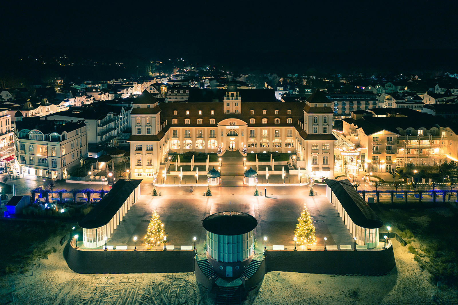 Ostseebad Binz, Kurhaus, Nachts, Drohnenfoto, Luftbild, Kurplatz