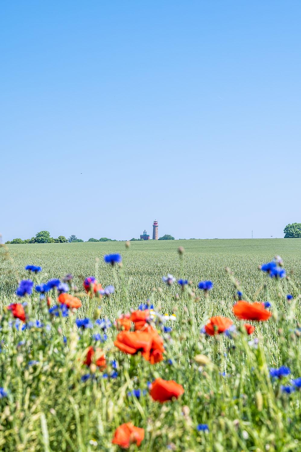 Mohnblumen, Poppyfield, Blumenwiese, rot, Kap Arkona, Mohnblumen, Kornblumen, Hochformat