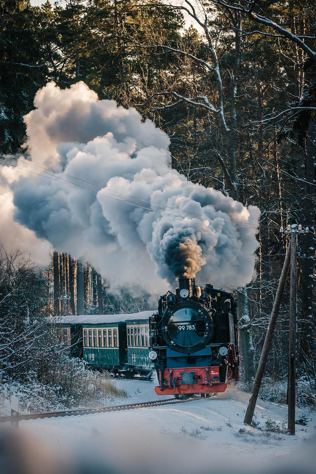 Der Rasende Roland im Winter, Schnee, Granitzwald, Sellin, Dampflok
