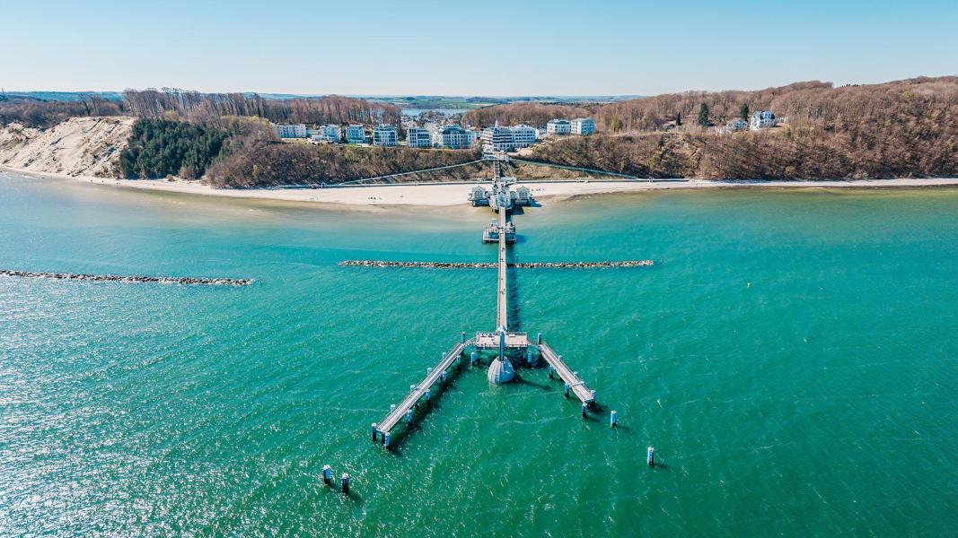 Drohnenaufnahme, Luftbild, Drohnenfoto Ostseebad Sellin, Seebrücke, First, Kurhaus, Frühling