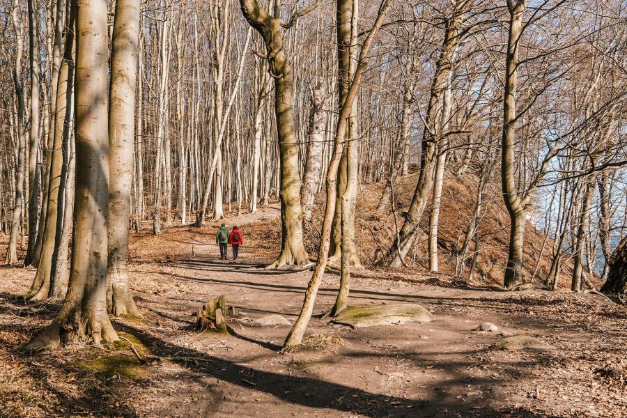 Wanderfrühling, Wald, Wandern, Wanderer, Wandweg, Steilküste, Nationalpark Jasmund, Kreidefelsen, Paar